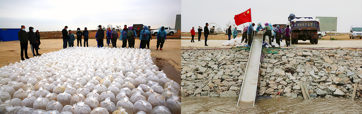 為提高對(duì)放流蝦苗成活率,今年,公司使用專用運(yùn)輸車將蝦苗運(yùn)輸?shù)街付ǚ帕骱S?,直接用專用流水槽將蝦苗投放入海,減少了中間運(yùn)輸環(huán)節(jié)的損失,縮短了蝦苗從育苗室到海上投放的時(shí)間,提高了苗種的成活率。